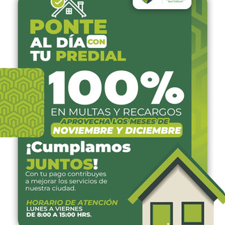 El H. Ayuntamiento de Ciudad Valles, a través de la Tesorería Municipal, invita a la ciudadanía a aprovechar el beneficio del 100% de descuento en multas y recargos del impuesto predial, durante los meses de noviembre y diciembre del presente año.