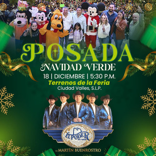 El H. Ayuntamiento de Ciudad Valles, en coordinación con el Gobierno del Estado de San Luis Potosí, invita a todas las familias vallenses a disfrutar de la Posada Navidad Verde, una gran celebración pensada para fortalecer la convivencia y llevar momentos de alegría a nuestra comunidad.