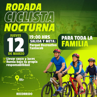 El H. Ayuntamiento de Ciudad Valles, a través de la Dirección de Cultura Física y Deporte, invita a la ciudadanía a participar en la Rodada Ciclista Nocturna, una actividad pensada para fomentar el deporte, la convivencia familiar y el uso responsable de la bicicleta.